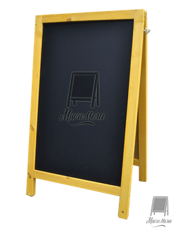 Меловой штендер 70×110см двусторонний АРТИКУЛ: MS70110 Меловой штендер с грифельным покрытием. Выполнен из дерева и имеет две пишущих поверхности для записей мелом или специальным меловым маркером. Материал: дерево, МДФ, грифельная эмаль Цвет пишущей поверхности: черный Цвет рамы: на выбор Размеры: 70×110 см Размер пишущей поверхности: 60×80 см Вес:7кг